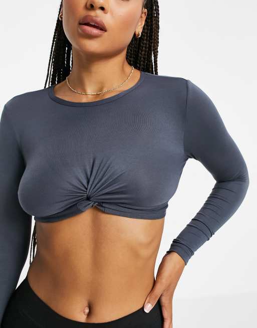 South Beach Yoga twist front long sleeve crop top in grey Very well made.