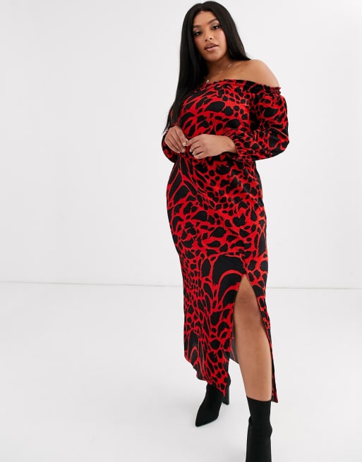 ASOS DESIGN Curve long sleeve leopard print bardot plisse midi dress Very well made.