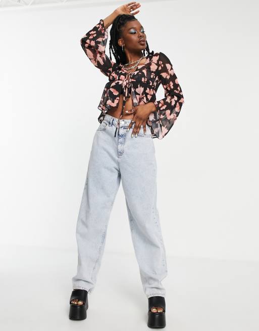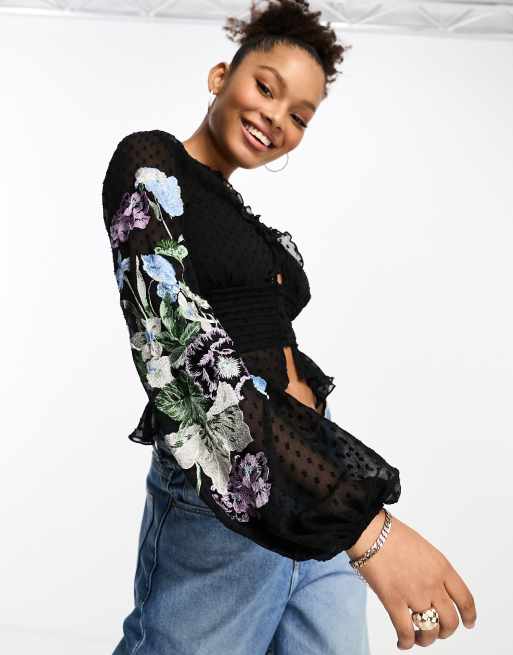 ASOS DESIGN long sleeve sheer blouse with shirred waist in floral print Very well made.