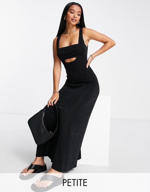 Topshop Petite seamed slinky cut out bralette midi dress in black Very well made.