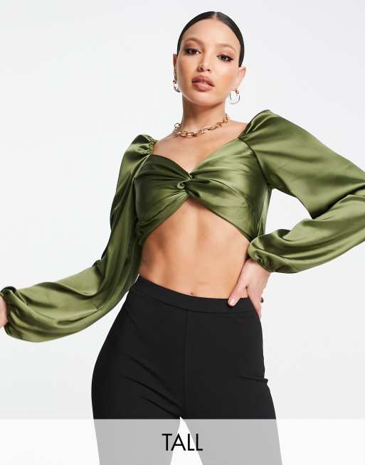 First Distraction the label Tall twist front satin top in olive ASOS Very well made.