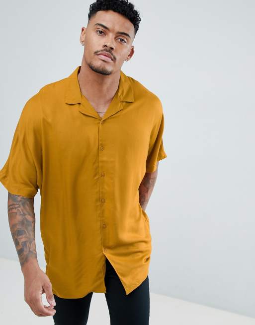 ASOS DESIGN oversized viscose batwing sleeve shirt in mustard Very well made.