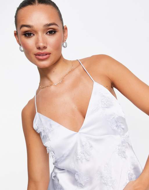 ASOS DESIGN satin cami with embroidery in pale blue ASOS Very well made.
