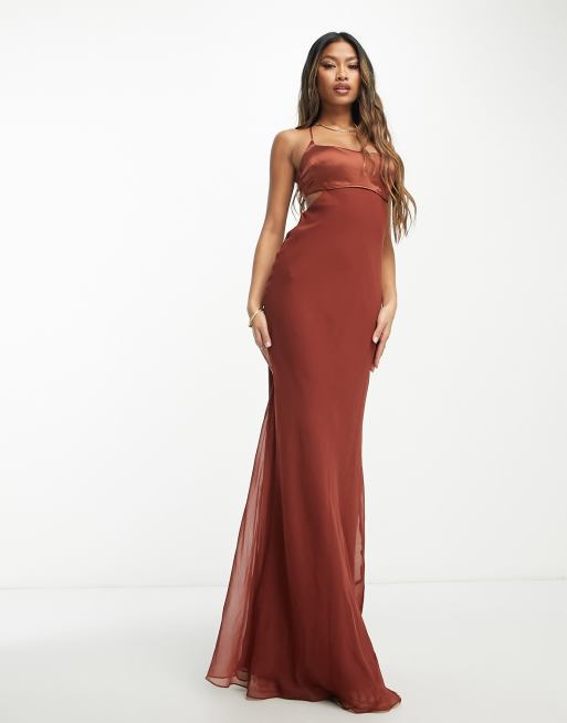ASOS DESIGN Petite cami satin ruched mesh insert wrap midi dress Very well made.