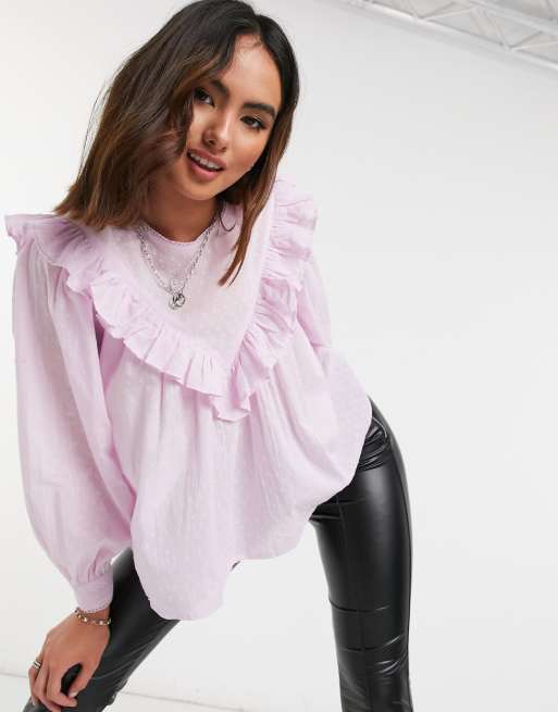 Only textured blouse with ruffle detail in lilac ASOS Very well made.