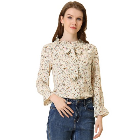 Allegra K Women s Vintage Floral Tie Neck Long Sleeve Ruffled Very well made.