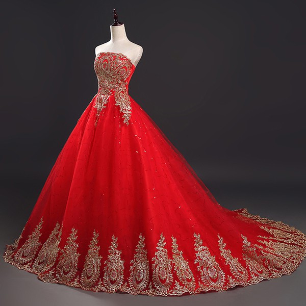Lace Red Wedding Dresses Women Fashion Elegant Ball Gown Shopee Very well made.