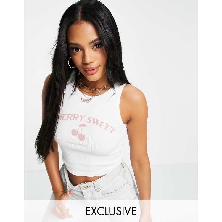 New Girl Order Exclusive cherry print tank crop top in white Very well made.