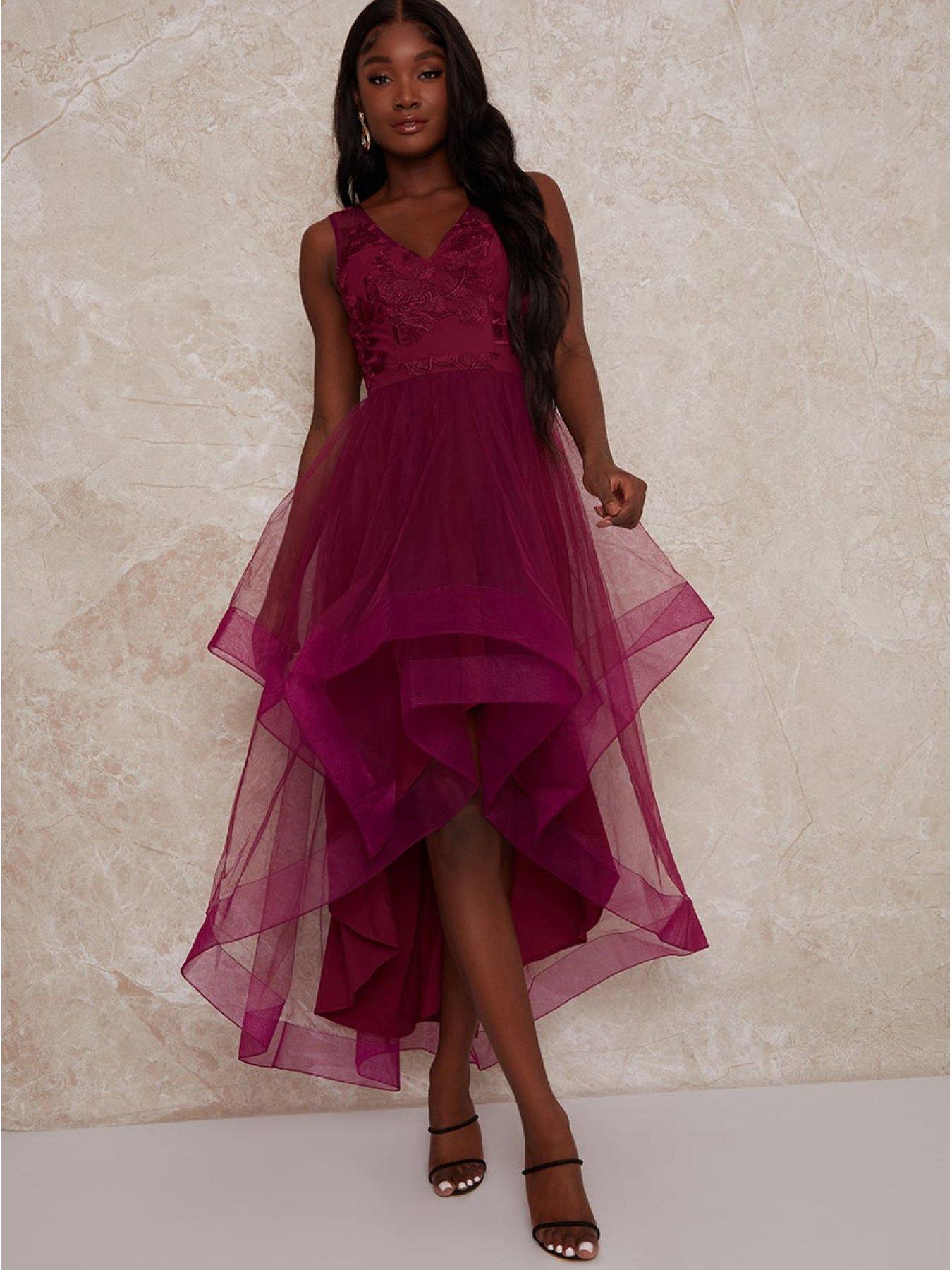 Chi Chi London Tulle Dip Hem Tiered Dress Berry at John Lewis Very well made.