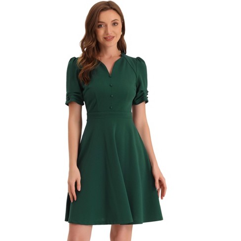 Zapaka Women Dark Green Work Dress Long Sleeves A Line Business Very well made.