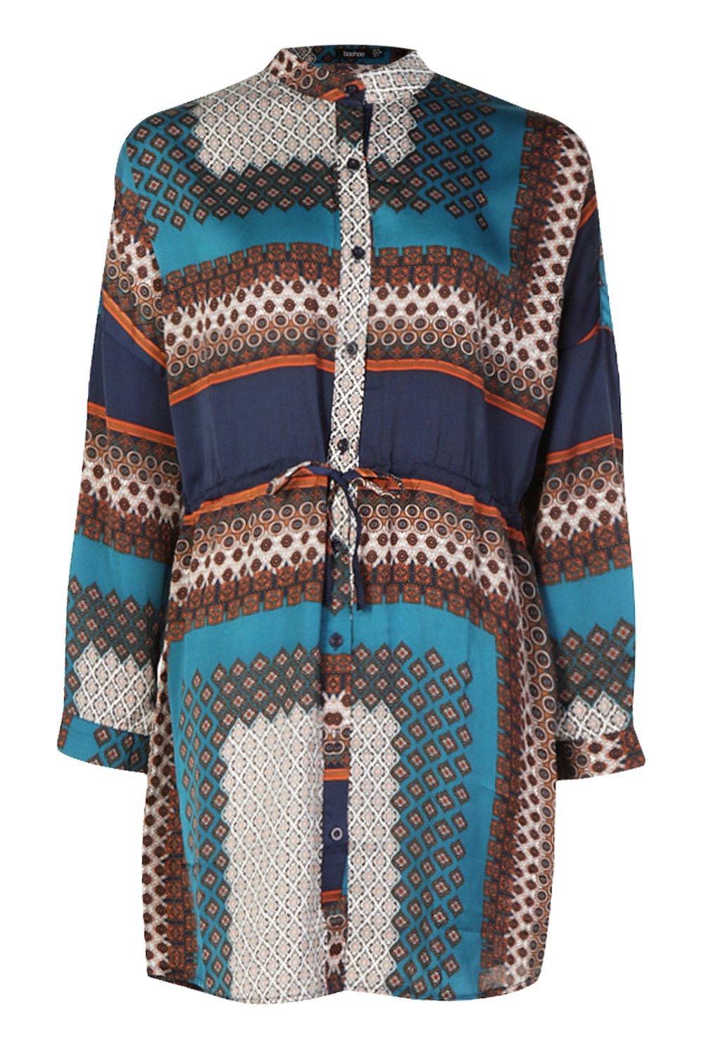 Plus Bright Paisley Wrap Shirt Dress boohoo Very well made.