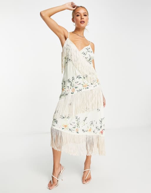 River Island embroidered fringe wrap midi dress in cream ASOS Very well made.