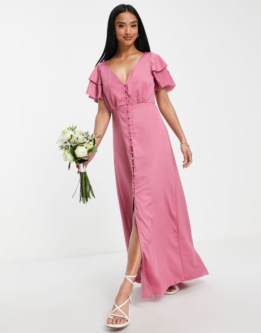 Aria Hot Pink Satin Midi Dress V Neck SilkFred US Very well made.