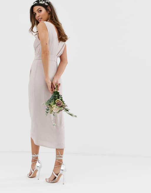 TFNC bridesmaid exclusive wrap midi dress in taupe Very well made.