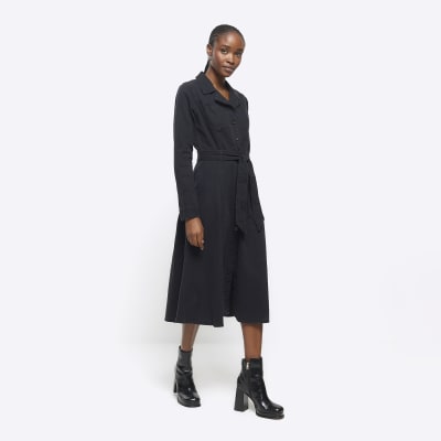 Black denim belted midi shirt dress River Island Very well made.