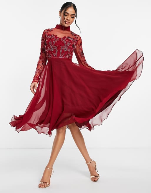 Virgos Lounge midi skater dress with embellished top in wine ASOS Very well made.