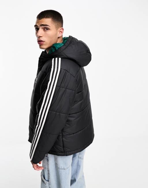 adidas Originals 3 stripe reversible puffer jacket in black and green Very well made.