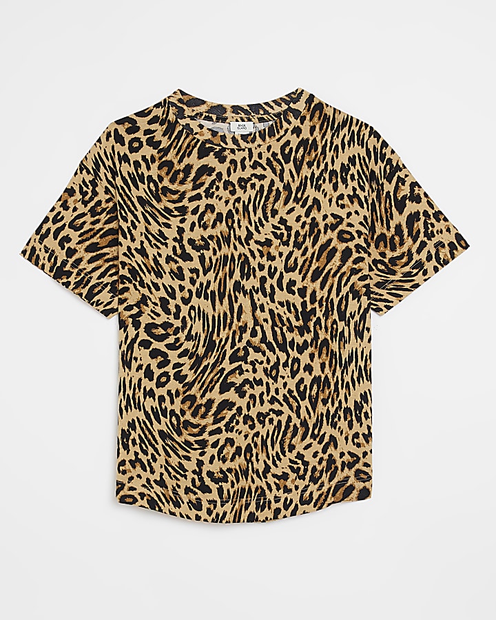 Girls Brown Animal Print T shirt River Island Very well made.