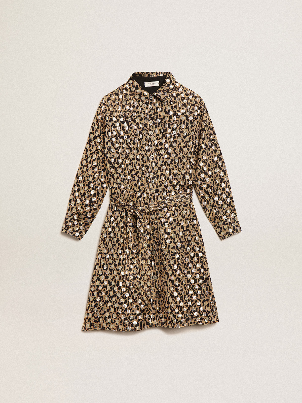 Girls shirt dress with animal print and gold plumetis Golden Goose Very well made.