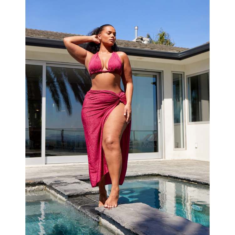 South Beach Curve ft Leslie Sidora Exclusive beach sarong in pink metallic Very well made.