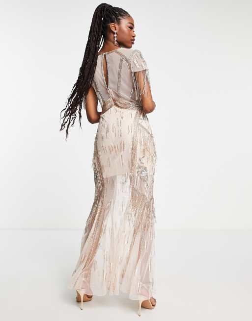 Embellished Plunge Neck High Split Maxi Dress in Blush Very well made.