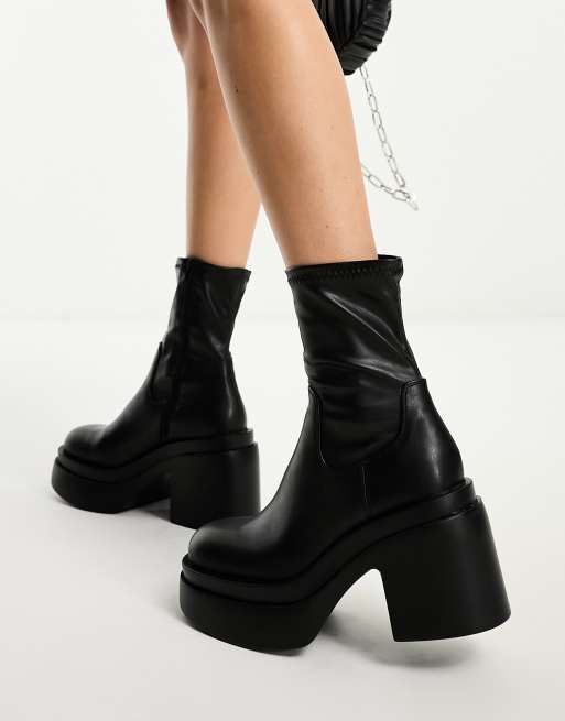 ASOS DESIGN Raven chunky mid heeled sock boots in black ASOS Very well made.