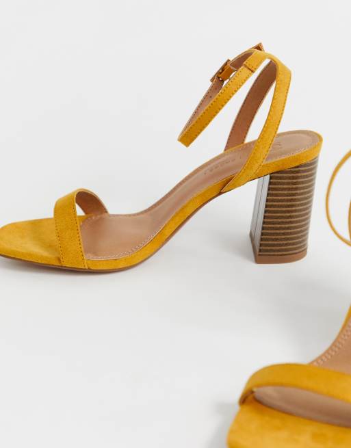 ASOS DESIGN Hong Kong barely there block heeled sandals in mustard Very well made.
