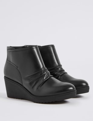 Leather Wedge Heel Ankle Boots M S Collection M S Very well made.