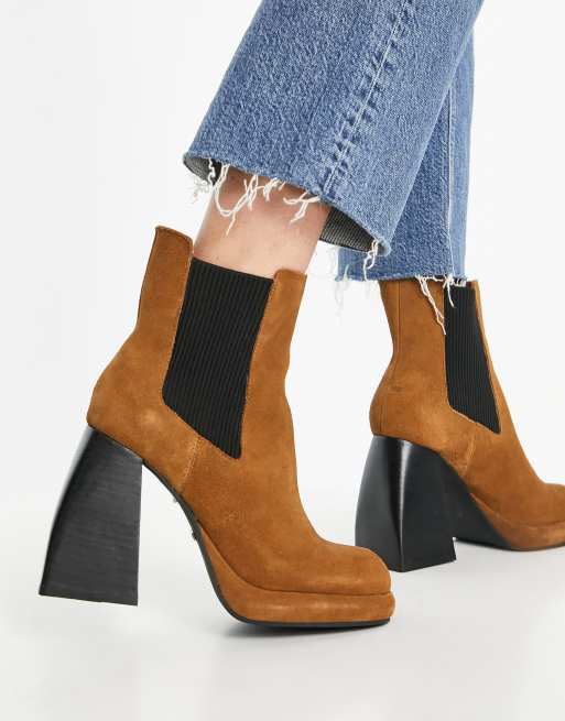 TOPSHOP Nina Flared Heel Sock Boot in Blue Lyst Very well made.