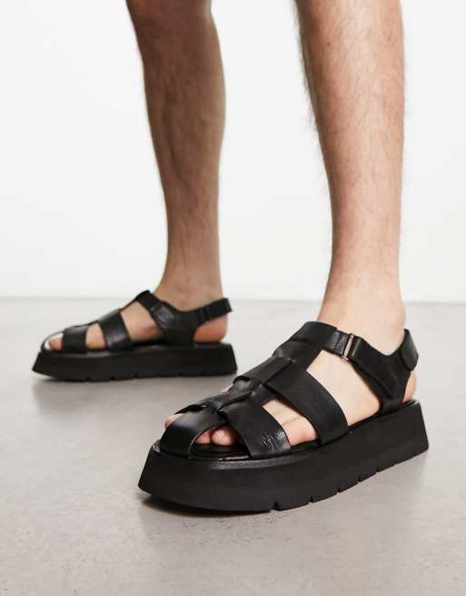 ASRA Sandy chunky fisherman sandals in black leather Very well made.