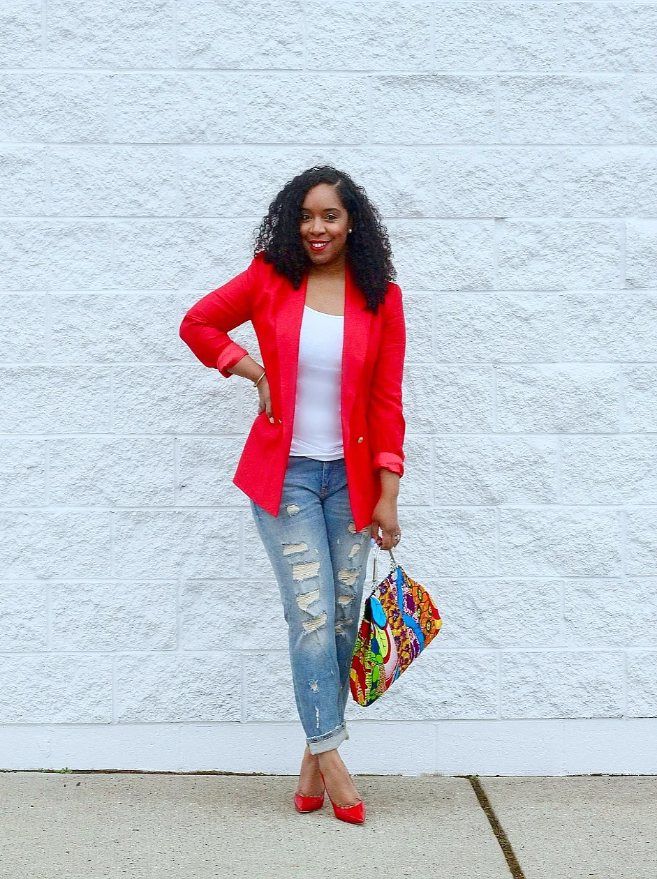 OOTD 12.4.17 Red Blazer Black Skinny Jeans Very well made.