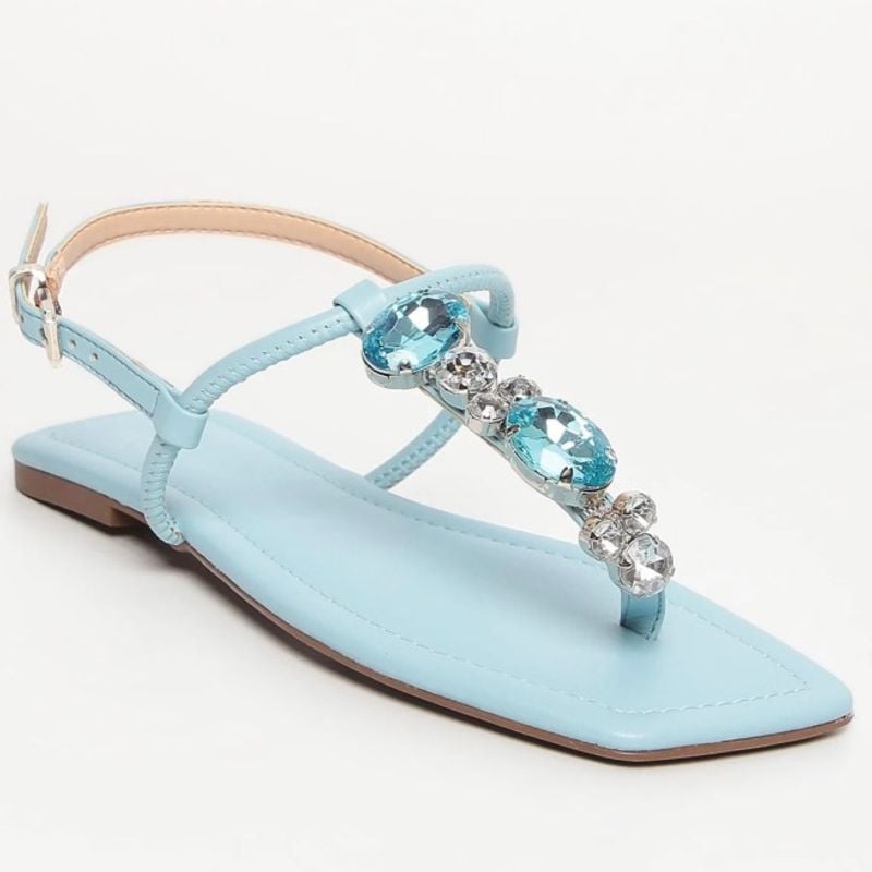 Sand lia Rasteira em Couro Azul com Pedraria Loucos e Santos 36 Very well made.