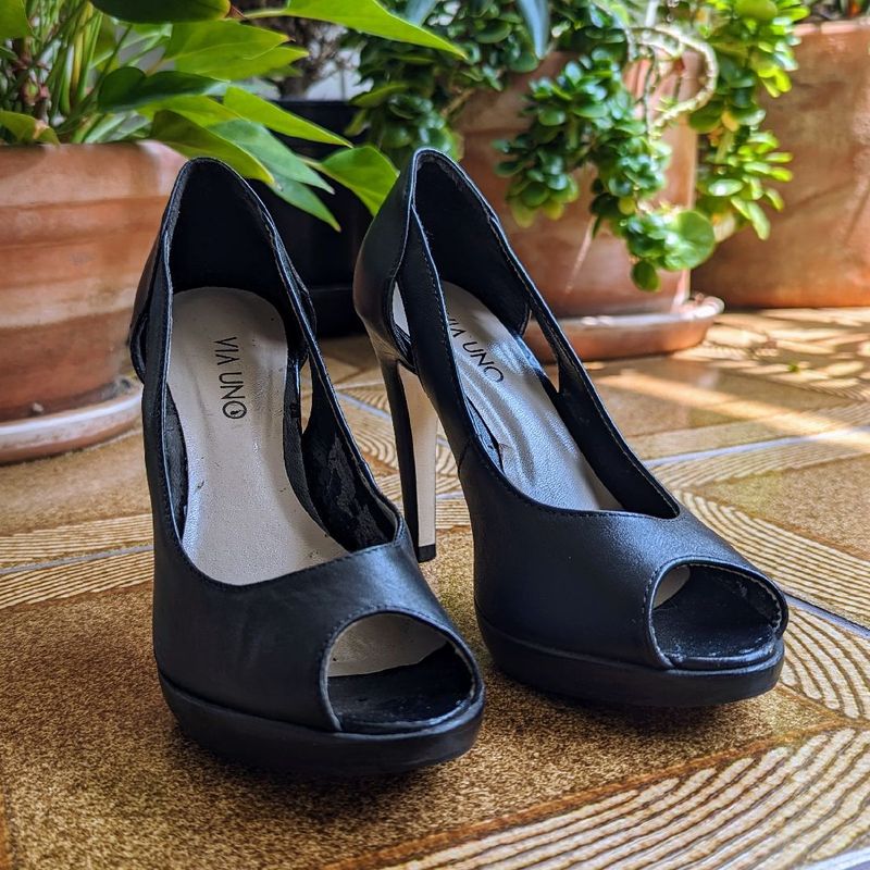 Scarpin Via Uno Preto Peep Toe Plataforma Tamanho 35 Sapato Very well made.