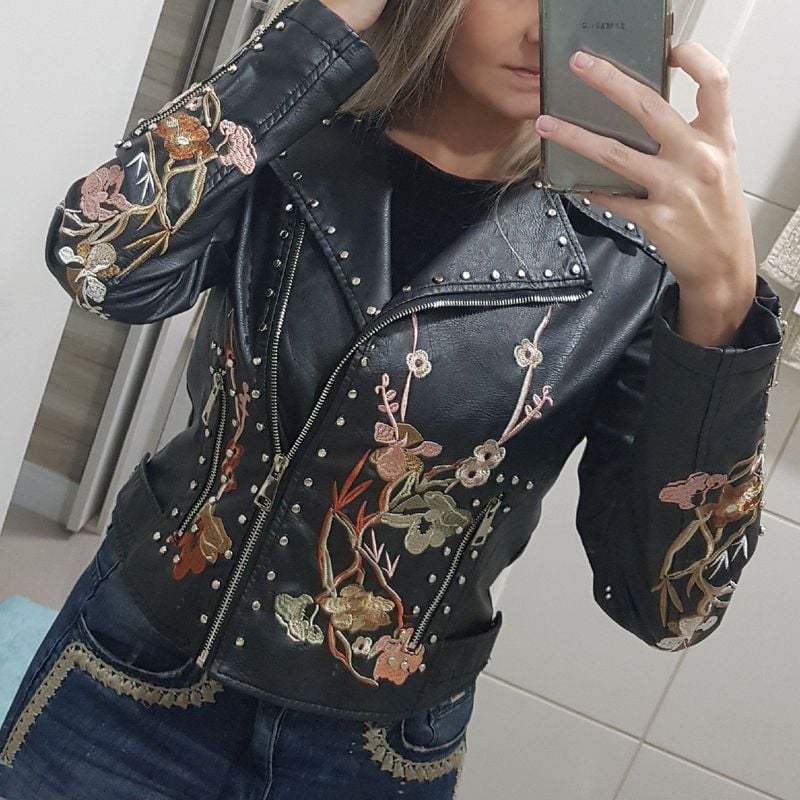 Jaqueta Couro Bordada Casaco Feminino Mooncity Usado 36266707 Very well made.