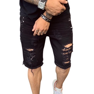 Bermuda jeans masculino preta rasgado com pinta branca Jeans Very well made.