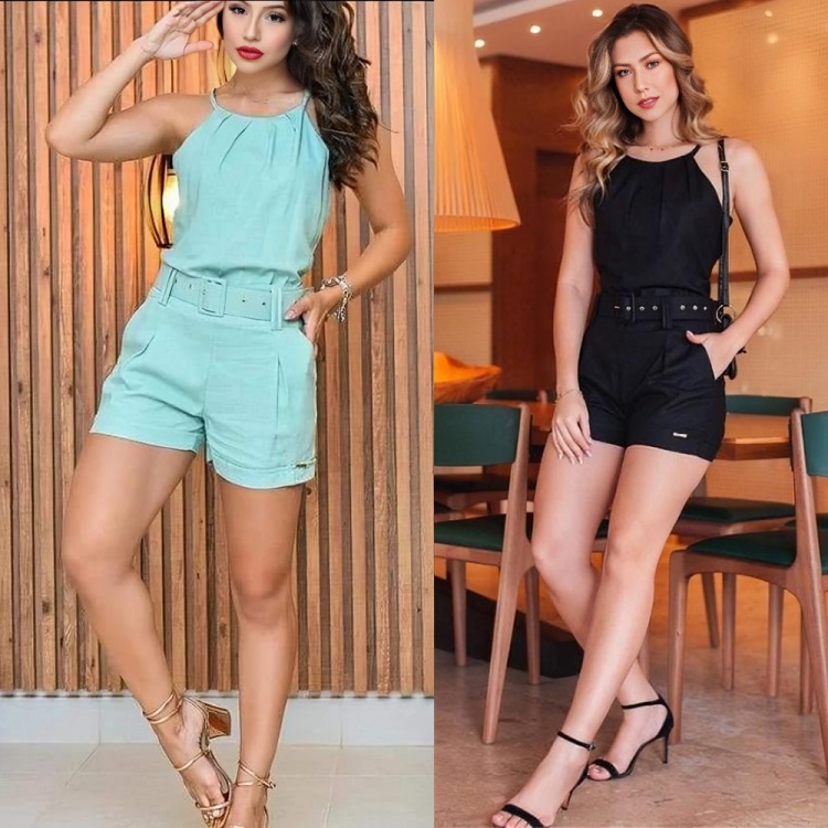 Conjunto Feminino Alfaiataria Blusa Short Cinto Al a Ajust vel Very well made.