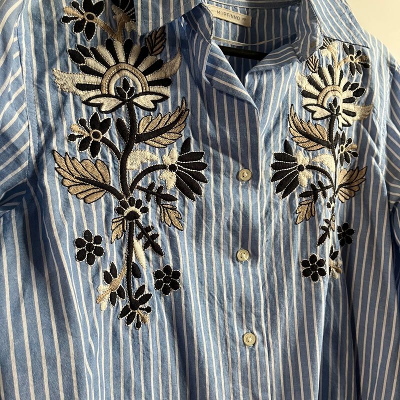 Camisa Acetinada com Punhos Largos Azul Very well made.