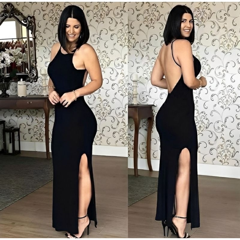Vestido Preto Longo De Festa Colado Sem Bojo Alcinha Very well made.