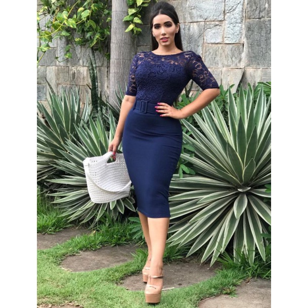 Vestido Tubinho Azul Marinho na Renda e Alfaiataria Moda Evang lica Very well made.