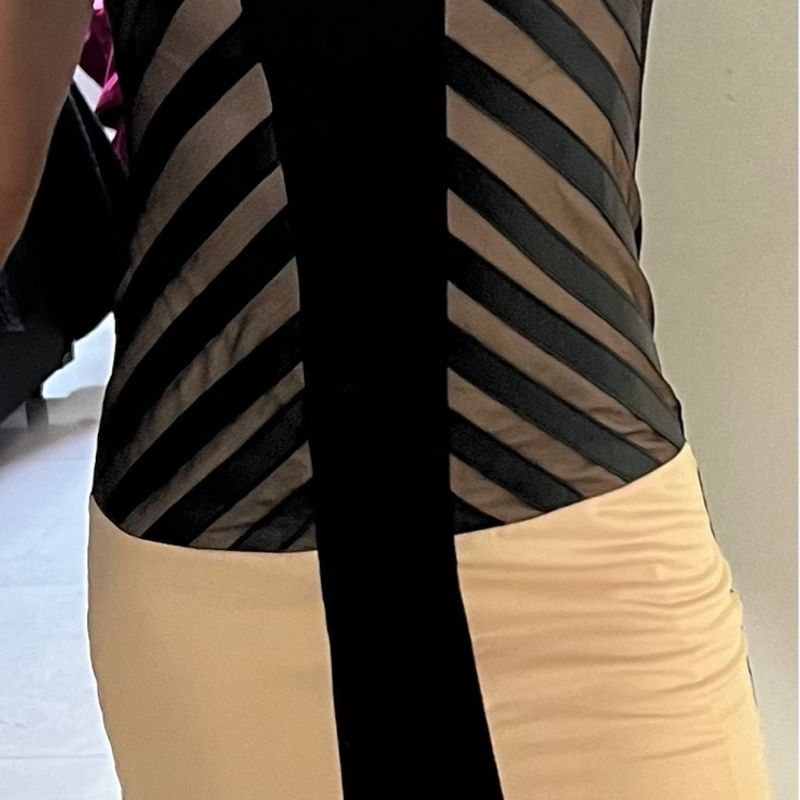 Boutique Tri ngulo 9473 VESTIDO MIDI CON COLA TEJIDO BROCADO Very well made.