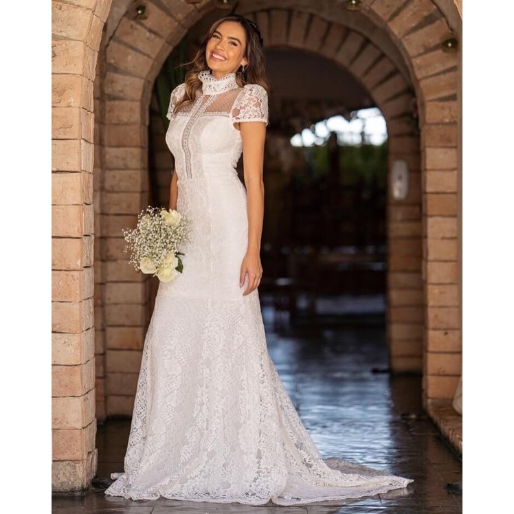 VESTIDO NOIVA CIVIL MAIT COM GOLA ALTA Very well made.