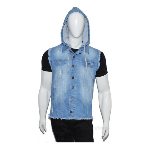 Colete Jeans Masculino Com Capuz Removivel Azul Claro Escorrega Very well made.
