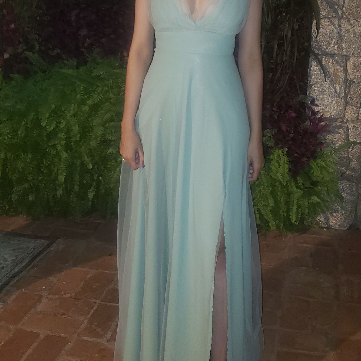 vestido verde longo com fenda Ak am elbisesi Mavi mezuniyet Very well made.