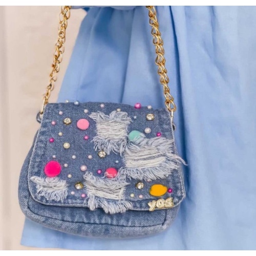 Bolsinha Infantil Menina Al a Corrente Bolsa Jeans Pompom Very well made.