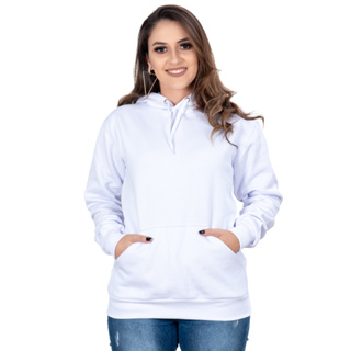 Blusa Moletom Liso Feminino Fechado Canguru Retta Capuz Branco Very well made.