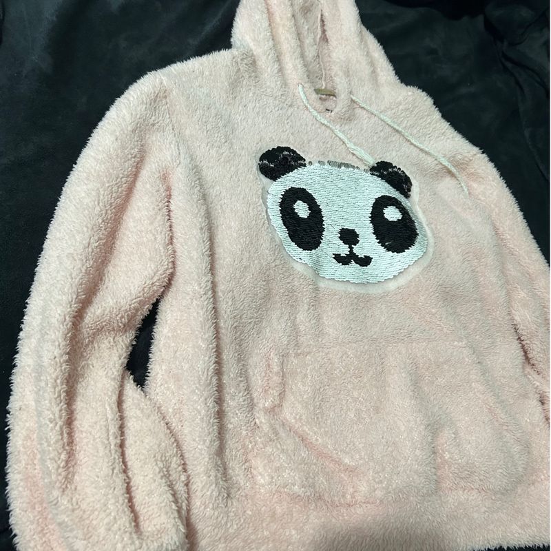 Moletom de Pelinhos com Panda em Lantejoula Casaco Feminino Very well made.