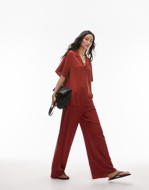 Topshop co ord pull on crinkle wide leg trouser in rust Very well made.