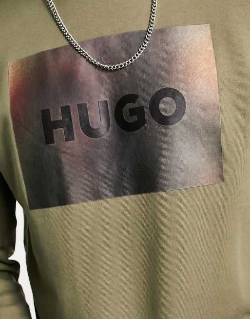 HUGO Duragol blurred box logo sweatshirt in khaki green Very well made.
