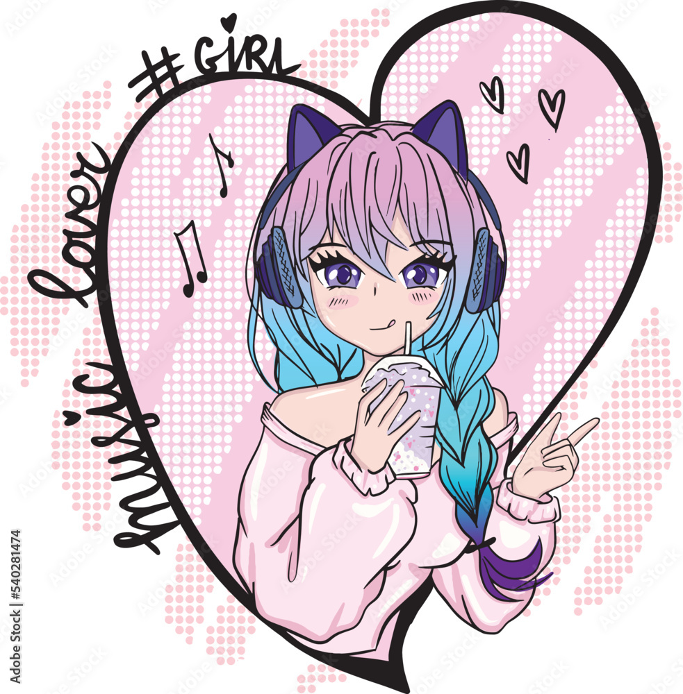 T shirt design Anime girl with big eyes and pink hair. Fashionista Very well made.