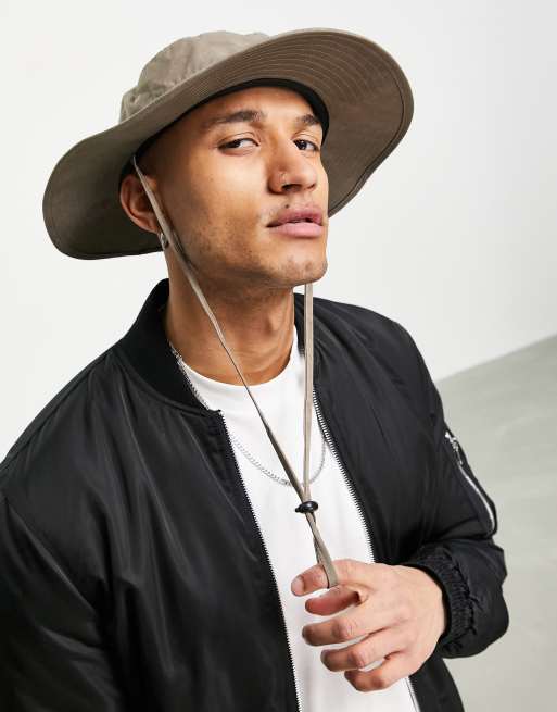 ASOS DESIGN safari bucket hat in washed brown with size adjuster Very well made.